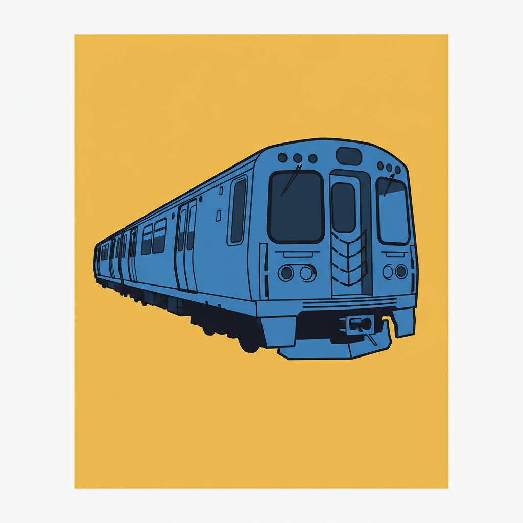 The classic BART livery rendered as a single-color pop-art print.