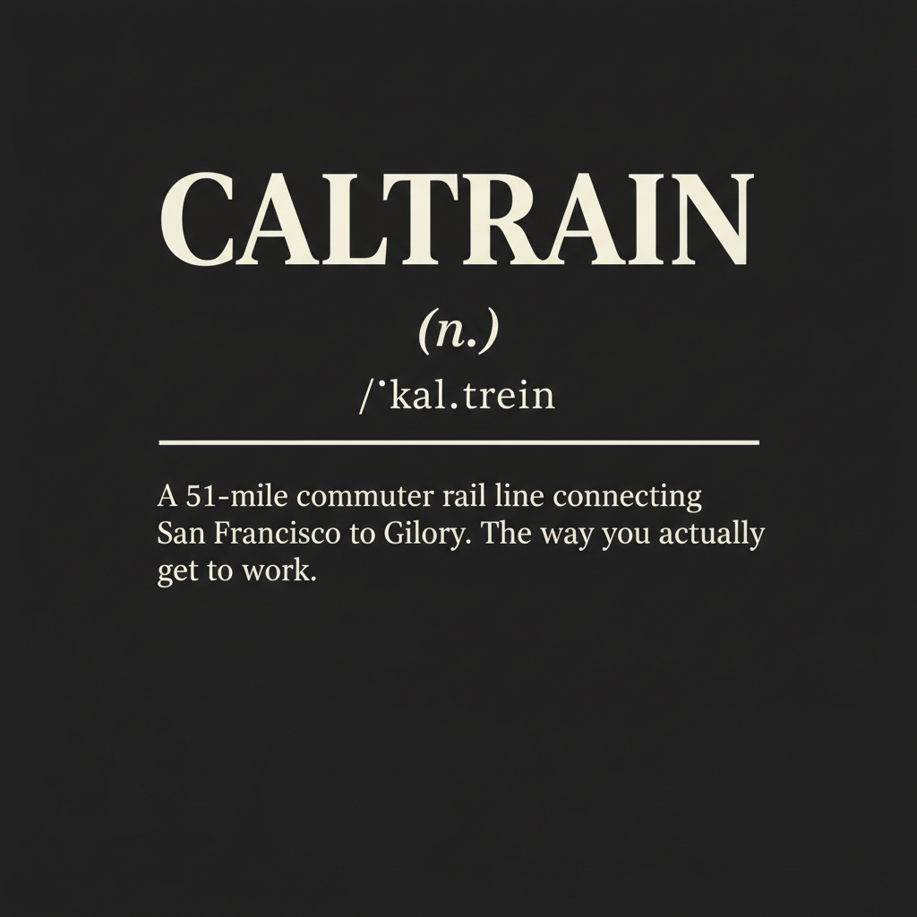 Dictionary-style tribute to the 51-mile commuter rail line that quietly powers the Peninsula. Choose your finish: black, platinum, gold, or rose-gold.