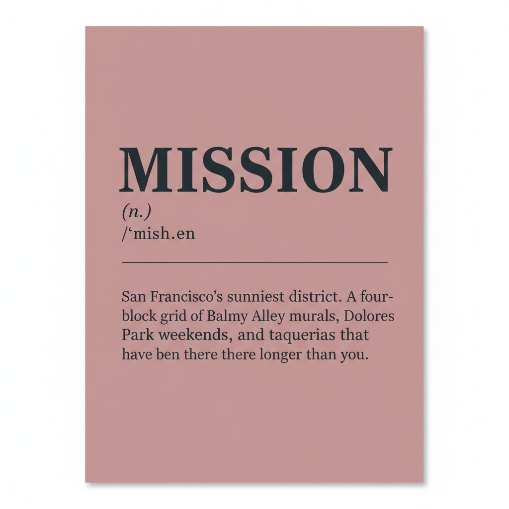 Murals, taquerias, sun-soaked Dolores afternoons. The Mission, defined.