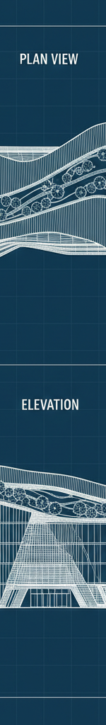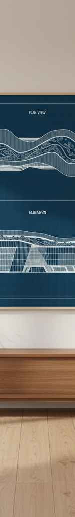 Frank Gehry's Hacker Way headquarters with the rooftop park, in cyanotype.